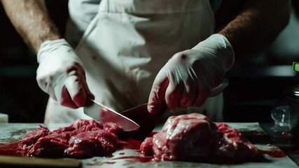 Chef Skillfully Preparing Meat In Professional Kitchen Videos