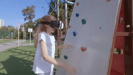 Child Experiencing Virtual Reality Technology With Scientist Videos