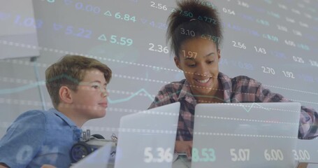Children Learning Computers With Data Overlay Animation Videos