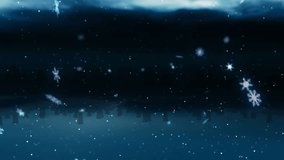 Christmas Decorations With Falling Snow On Blue Background Videos