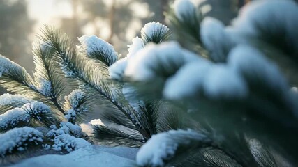Christmas Tree With Falling Snow At Sunset In Winter Forest Videos