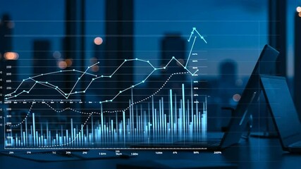 City Skyline With Overlay Of Financial Graphs And Data Videos
