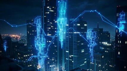 Cityscape With Data Overlay And Digital Network Concept Videos