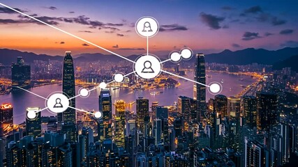 Cityscape With Digital Network Connectivity Overlay Videos