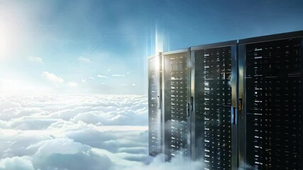 Cloud Computing Network And Data Connections In Blue Sky Animation Videos