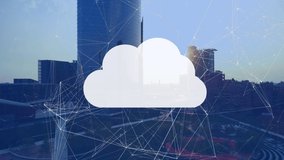 Cloud Computing Network Connections Over Cityscape Videos