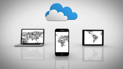 Cloud Computing Network With Electronic Device Icons On Waveform Videos
