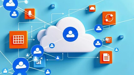 Cloud Computing With Data Flow And Media Icon Visualization Videos