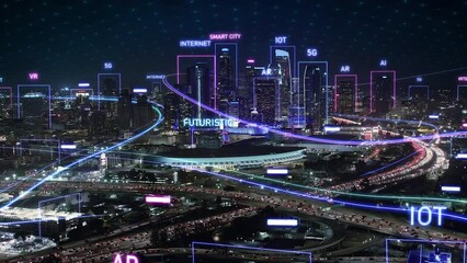 Cloud Data Uploading Over Cityscape With Digital Elements Videos