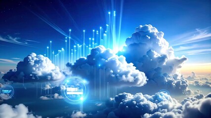Cloud Technology Networking At Sunset With Digital Icons Videos