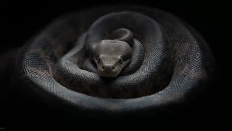 Coiled Python Reacting And Lifting Head Under Dramatic Top Light Close Up Video Videos