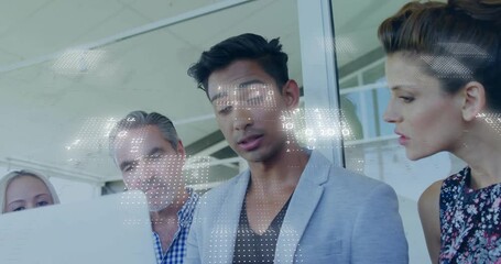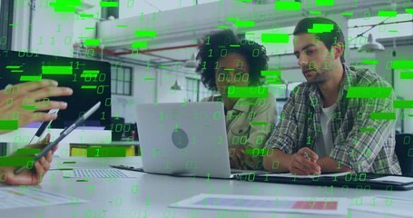 Collaborating Colleagues Analyzing Digital Data With Binary Code Overlay Videos