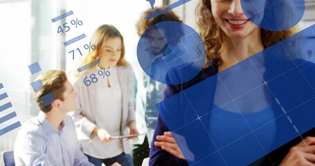 Collaborating In Modern Office With Data Analytics Overlay Videos