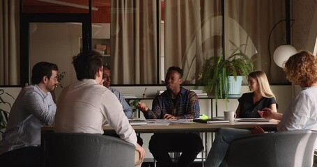 Collaborating Multiracial Team Analyzing Stock Market Data Videos