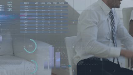 Collaborative Business Meeting Amidst Global Data Visuals Videos