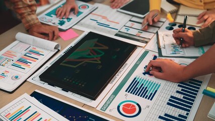 Collaborative Team Analyzing Financial Data Trends Using Technology Videos
