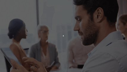 Collaborative Team Meeting With Futuristic Digital Overlay Videos