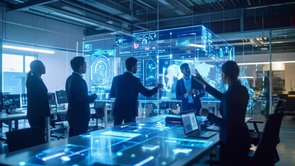 Collaborative Team Meeting With Global Digital Network Interface Videos