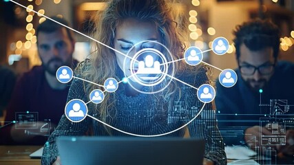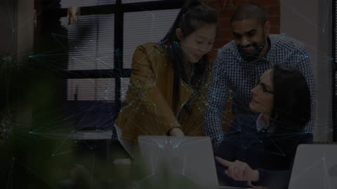 Collaborative Team Strategy Meeting With Digital Overlay Videos