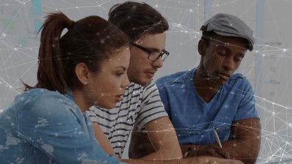 Collaborative Tech Meeting With Digital Network Concept Overlay Videos