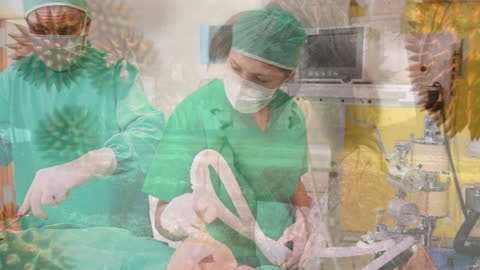 Collage Of Surgeon With Overlay Of Covid 19 Cells Videos