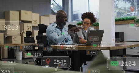 Colleagues Analyzing Data On Laptop With Digital Graph Overlay Videos