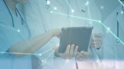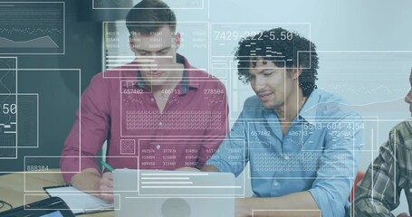 Colleagues Analyzing Data Overlaid With Technology Graphics Videos