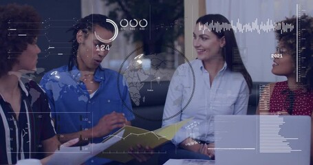 Colleagues Analyzing Data Reports With Digital Graphics Overlay Videos