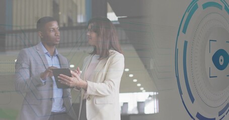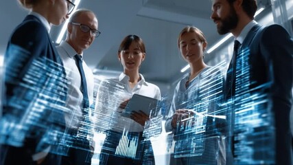 Colleagues Analyzing Digital Data With Futuristic Interface Videos
