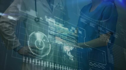 Colleagues Analyzing Digital Data With Futuristic Interface Videos