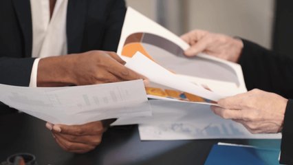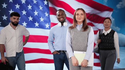 Colleagues Analyzing Documents With American Flag Overlay Videos