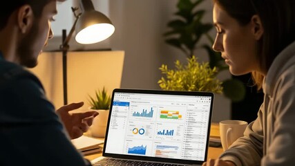Colleagues Analyzing Financial Data In Evening Meeting Videos