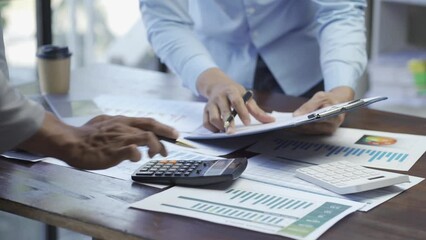 Colleagues Analyzing Financial Data On Tablet Videos