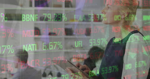 Colleagues Analyzing Stock Market Trends With Virtual Data Overlay Videos