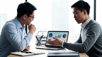 Colleagues Collaborating On Data Analysis With Laptop Videos