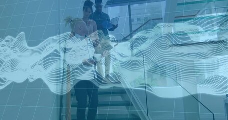 Colleagues Collaborating On Tablet With Digital Networking Overlay Videos
