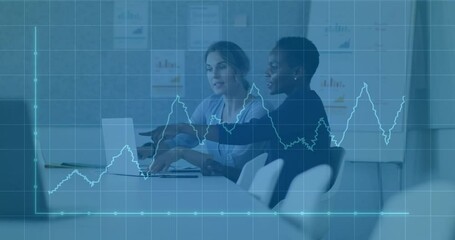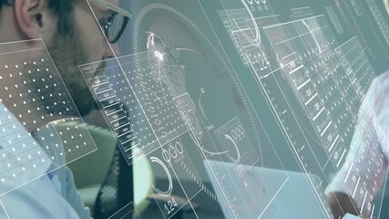 Colleagues Discussing Financial Analytics With Digital Overlay Videos