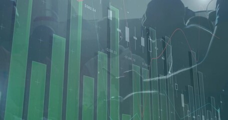 Colleagues Discussing Financial Analytics With Digital Overlay Videos