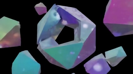 Colorful Animation Of Floating Geometric Gems On Black Videos