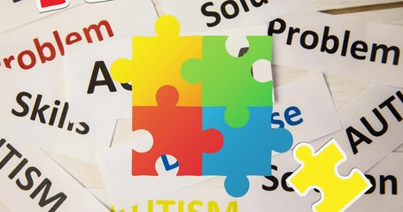 Colorful Autism Awareness Text And Puzzle Pieces Animation Videos