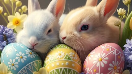 Colorful Easter Bunnies And Eggs Pattern Videos