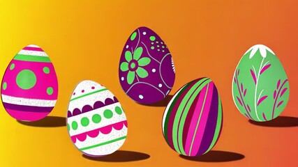 Colorful Easter Egg Pattern On Green Gradient Background Videos