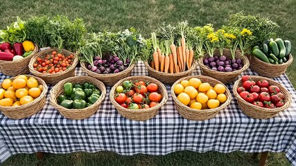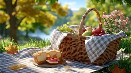 Colorful Picnic Basket With Fresh Food On Checkered Table Videos