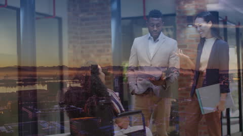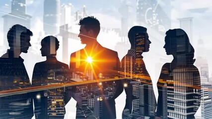 Conceptual Animation Of Business Collaboration With Cityscape Overlay Videos