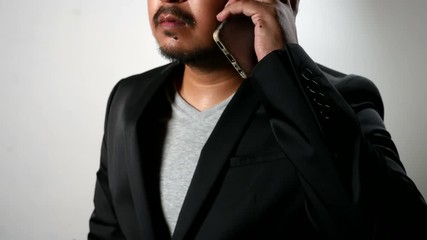 Confident Businessman In Suit Using Smartphone On White Background Videos