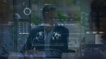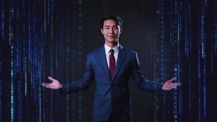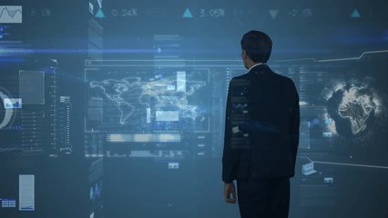 Confident Businessman Overlays Future Technology Data Insights Videos