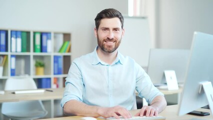 Confident Businessman Smiling While Working On Computer Videos