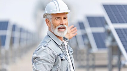 Confident Engineer Overseeing Solar Panel Technology Innovation Videos
