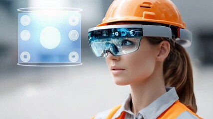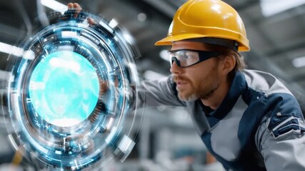 Construction Worker Engaging With Futuristic Virtual Interface Videos