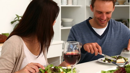 Couple Enjoying Lunch With Red Wine At Home Kitchen Table Videos